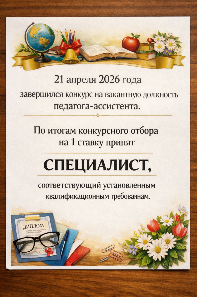 21 сәуір 2026 жылы педагог-ассистенттің бос лауазымына конкурс аяқталды.